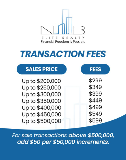 For homes priced up to $200,000, we charge a flat fee of $299. For homes priced up to $500,000, we charge a flat $599 transaction fee. For transactions above $500,000, we add $50 per $50,000 increment (refer to the image below).